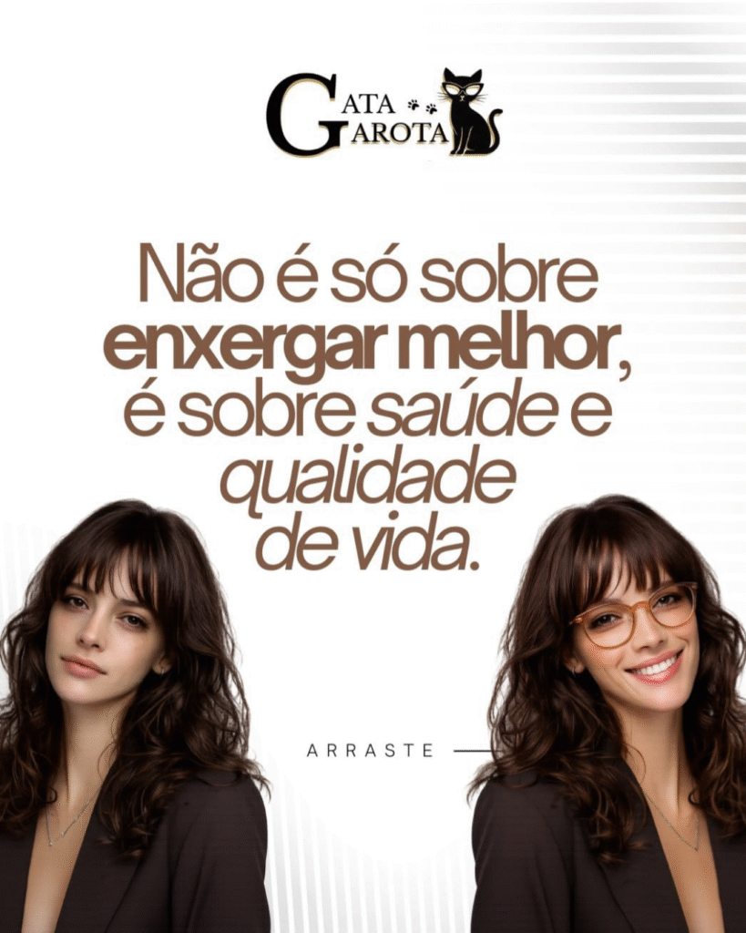 Na Ótica Gata Garota, você encontra óculos de grau femininos modernos, elegantes e de alta qualidade. Trabalhamos com armações selecionadas e lentes personalizadas conforme sua receita oftalmológica, garantindo mais conforto e nitidez no dia a dia.